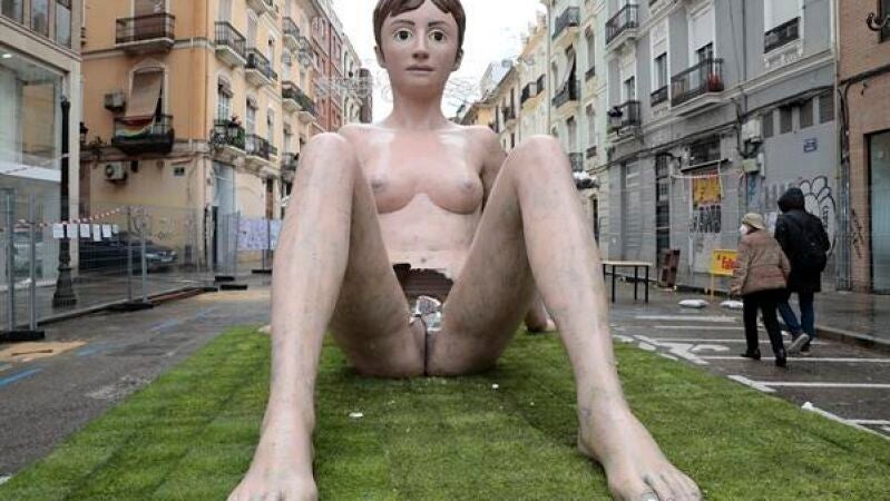 Destrozan la vagina a una falla en Valencia que representaba el cuerpo desnudo de una mujer