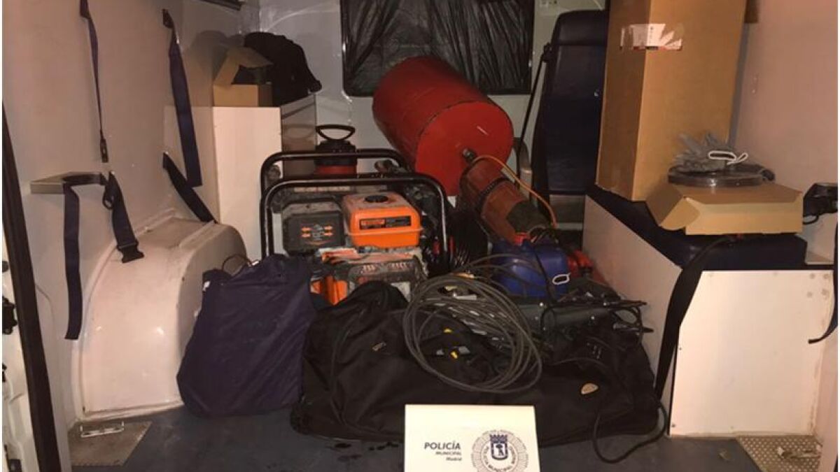 En ese momento el sospechoso huyó y se metió en una furgoneta en la que le esperaba otro hombre, y a la que los agentes le dieron el alto, obligando a salir a ambos. Así descubrieron que llevaban una gran cantidad de material para perpetrar robos, como taladros, radiales e inhibidores de onda, y objetos supuestamente robados.