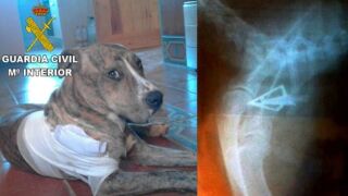 La dueña del can relató a la Guardia Civil que lo había encontrado "tirado en el suelo de la entrada de su vivienda, malherido y con un orificio en el costado y rodeado por un charco de sangre". El perro fue atendido en una clínica veterinaria donde tuvo que ser operado de urgencia al tener una punta de flecha clavada en su interior.