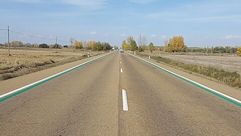 Desde hace un tiempo, la DGT está pintando líneas verdes en algunas carreteras de Castilla y León con el objetivo de provocar un efecto visual de estrechamiento de la calzada. De esta manera, el conductor tiene la sensación de que está conduciendo por un carril que parece más pequeño de lo que en realidad es. Esta sensación de estrechamiento lleva a los conductores a desacelerar la marcha al creer que la carretera es más pequeña.