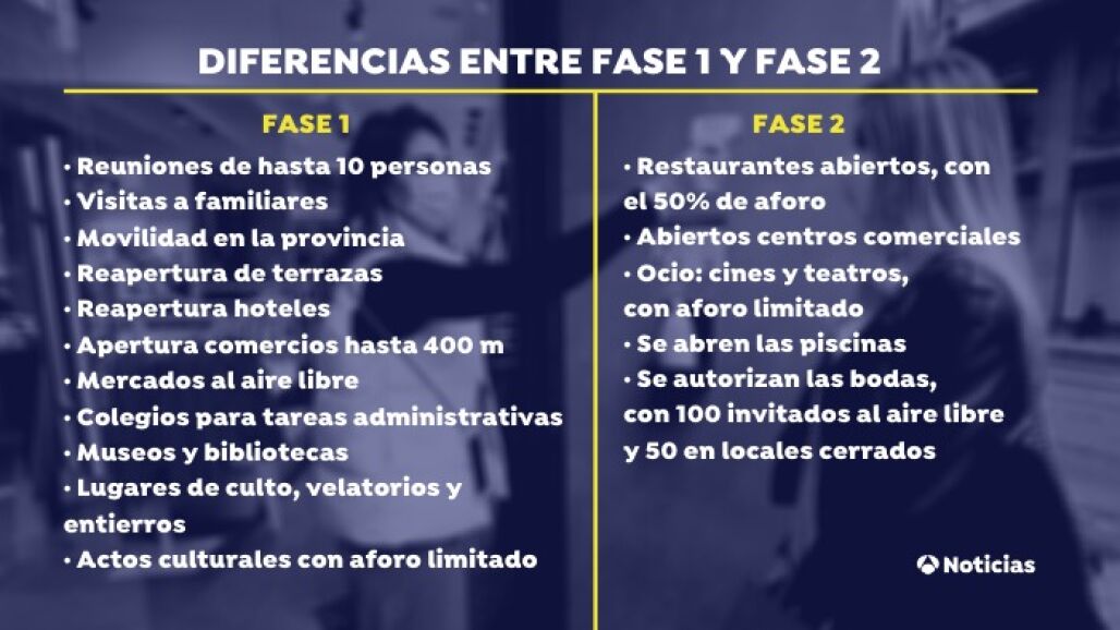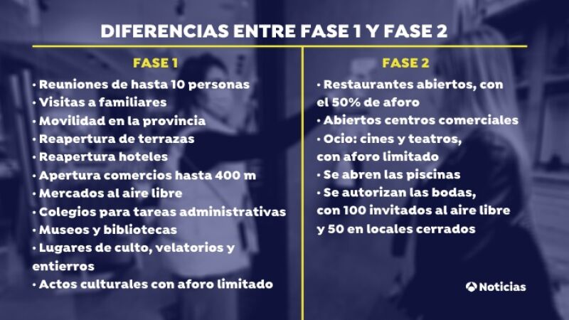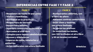 Diferencias entre la fase 1 y la fase 2 de la desescalada del coronavirus