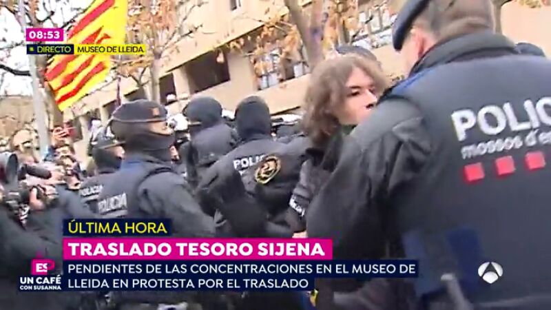 Los manifestantes que se concentran fuera del Museo de Lleida para intentar dificultar el traslado de los obras de Sijena a Aragón han vivido momentos de tensión con los mossos que protegen el dispositivo preparado para llevárselas, que en un momento han llegado a utilizar sus porras contra los concentrados. El momento de mayor tensión se ha producido cuando más de un centenar de personas han intentado acceder al perímetro vallado alrededor del Museo de Lleida, lo que ha sido impedido por una barrera formada por decenas de Mossos.