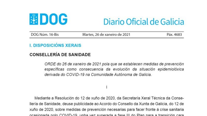 DOG de hoy 27 de enero con las nuevas restricciones de Galicia en PDF