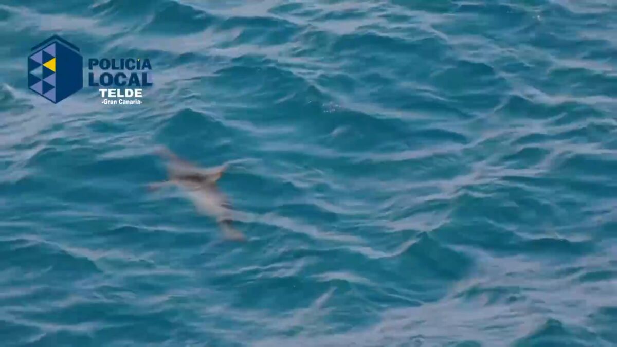 ¿Dónde está el tiburón que apareció este fin de semana en Gran Canaria? Los drones lo buscan por toda la playa