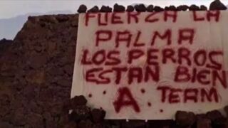 Esta mañana ha aparecido un cartel en uno de los estanques vacíos afectados por el volcán de La Palma en el que se podía leer: "Los perros están bien".
