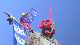 Un portavoz de la entidad ha señalado a Efe que además de esta acción dos escaladores de la organización están desplegando en el mismo monumento, de 57 metros de altura, una pancarta alusiva a la urgencia climática para denunciar que este problema apenas se ha tratado durante la campaña electoral.