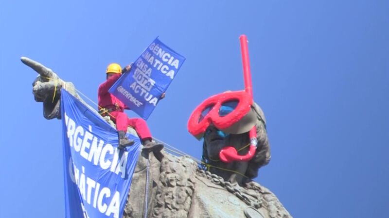El portavoz de Greenpeace ha criticado que, durante los últimos quince días, "no se ha tratado para nada el cambio climático ni otras cuestiones que importan a la gente en su día a día". Sobre el hecho de que la estatua lleve ahora unas gafas de buzo, el representante de Greenpeace ha precisado que tiene que ver "con que uno de los principales impactos de este cambio climático es el incremento del nivel del mar en todo el mundo".