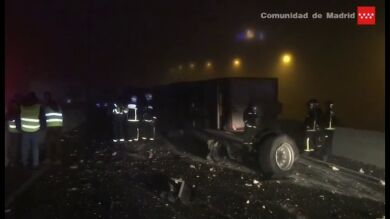Dos camiones se accidentaron esta madrugada en la carretera de circunvalación de Madrid M-50 a la altura de Las Rozas. En un primer momento fue necesario cortar la vía y, aunque no se registraron heridos, una mujer embarazada rompió aguas y tuvo que ser evacuada del atasco que provocó el accidente.