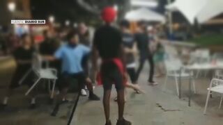 El suceso tuvo lugar este domingo por la noche en un momento de máxima afluencia por ser la hora de cenar. Los dos descamisados eran hermanos y finalmente fueron detenidos por la Policía Local, que fue al lugar de los hechos después de que varios testigos llamasen a emergencias.