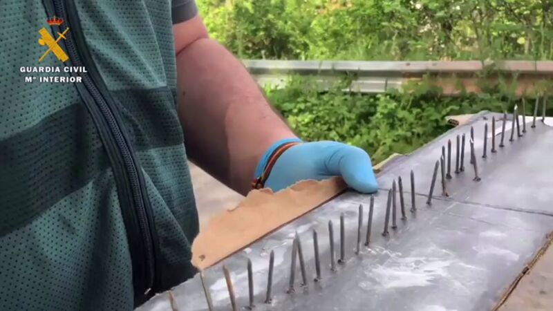 La Guardia Civil ha detenido a una mujer y un hombre, con antecedentes por saltarse el confinamiento, por haber colocado clavos en la calzada con la intención de provocar accidentes o causar daños a los vehículos.