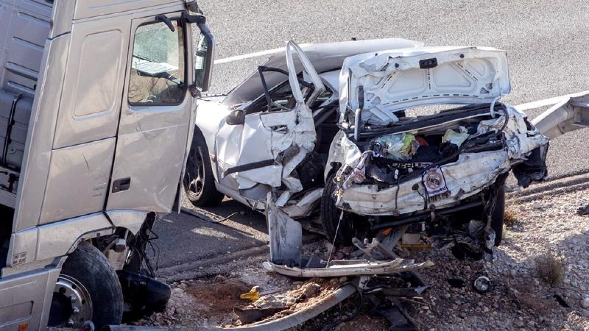 Los testigos, que llamaron a los servicios de emergencias, afirman que uno de los turismos ha quedado debajo del camión, que transportaba arena, y los otros dos estaban obstaculizando la carretera. Seis personas han resultado heridas y dos han muerto. Todos habían quedado atrapados en sus vehículos.