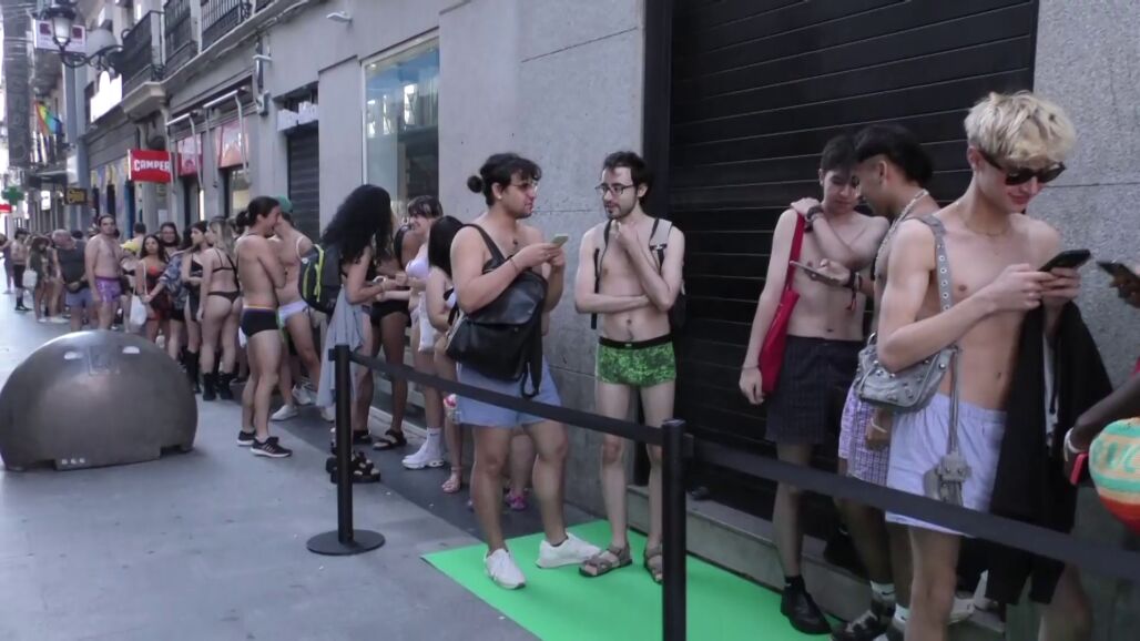 Nuestra compañera Carla Moya se ha desplazado hasta esta tienda de Madrid en la que, las 100 primeras personas que entraran en ropa interior (sí, sí) tras la apertura de hoy, se llevaban 2 prendas gratis. ¿Que si alguien lo ha hecho? Solo tienes que ver las imágenes que acompañan esta noticia para comprobarlo.