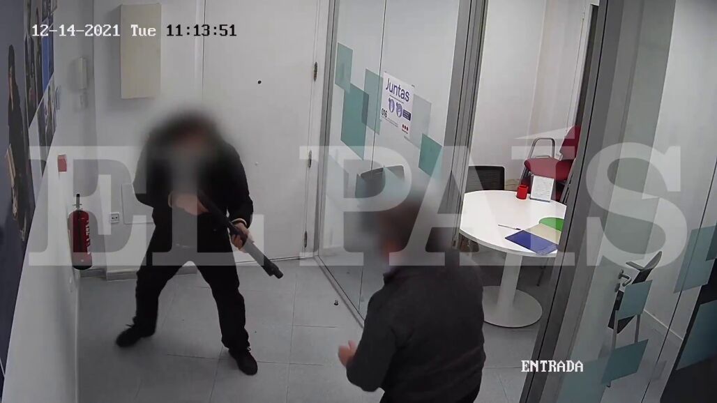 El diario 'El País' ha tenido acceso a las cámaras de seguridad que recogen toda la secuencia de los disparos. La llegada del hombre, ataviado con una peluca y portando una pistola, a las oficinas de la compañía, la conversación con el gerente y el momento en el que dispara sobre sus compañeros.