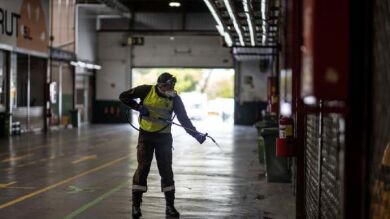 Efectivos de la UME desinfectan Mercamadrid que se blinda contra el coronavirus para que nuestras despensas estén llenas
