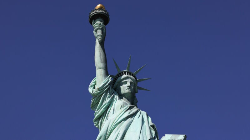 El 28 de octubre de 1886, Grover Cleveland, presidente de Estados Unidos, inaugura la Estatua de la Libertad. La historia de la Estatua de la Libertad comienza en 1865 cuando Edouard de Laboulaye, político y jurista francés activista contra la esclavitud, propuso la construcción de una estatua que representara la libertad de Estados Unidos con el objetivo de entregársela al país como obsequio en conmemoración del centenario de la Declaración de Independencia estadounidense y que sirviera para afianzar la alianza con Francia. En 1870 el escultor francés Frédéric Auguste Bartholdi comenzó a diseñar la estatua. Contó con la ayuda del ingeniero Gustave Eiffel que diseñó la estructura interna. En 1876 un grupo de artesanos comenzó su construcción en París. En la Exposición Universal de París de 1878 se expusieron el brazo que sostiene la antorcha, la cabeza y los hombros. La estatua se completó y montó en París. El 4 de julio de 1884 fue entregada al político estadounidense Levi P. Morton. Un año después, tras reducir la escultura en 350 piezas individuales, fue enviada en barco a Nueva York en más de 200 cajas de madera, llegando el 17 de junio de 1885. Todavía pasaría más de un año hasta que fuera instalada e inaugurada, cuando fue acabado el pedestal sobre el que se asienta en la Isla de Bedloe en la Bahía de Nueva York. La isla empezó a ser conocida popularmente como Isla de la Libertad y en 1954 pasaría a ser el nombre oficial.