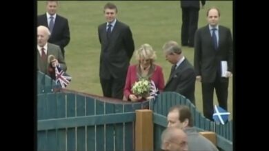 El 14 de abril de 2005, el príncipe Carlos de Inglaterra y Camilla, recién casados por lo civil unos días antes en Windsor, protagonizan su primer acto oficial conjunto tras el enlace. La pareja interrumpió su luna de miel en Escocia para cumplir con este compromiso público, que marcó el inicio de la agenda institucional de Camilla como miembro de la familia real británica y simbolizó la normalización oficial de su papel junto al heredero al trono.