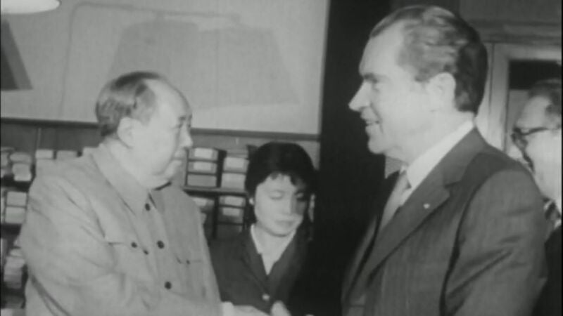 El 21 de febrero de 1972, Richard Nixon se convierte en el primer presidente de Estados Unidos que visita China. Histórica visita que culminaba la llamada diplomacia del 'ping pong'. Nada más aterrizar en Pekín, Nixon, anticomunista, se reuniría con Mao Zedong (Mao Tse Tung) presidente del Partido Comunista chino, el Gran Timonel. Esta visita al país asiático suponía de facto la normalización de las relaciones entre ambos países tras 22 años en suspenso. El viaje se produjo en un momento de tensión con el reconocimiento de Taiwán por parte de los estadounidenses, con la guerra de Vietnam donde Estados Unidos luchaba contra un aliado chino, y con una China que se sentía presionada en el norte de su territorio por su aliada la Unión Soviética, a su vez, enemiga de los norteamericanos.