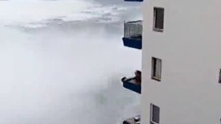 El mar alcanzó hasta la cuarta y quinta planta de este edificio ubicado en Mesa del Mar, en la localidad de Tacoronte, Tenerife . En las plantas bajas, las olas rompieron los cristales.