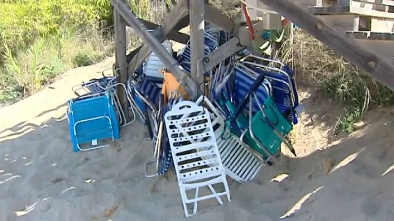 El Ayuntamiento de Chiclana de la frontera, en Cádiz, ha prohibido que los bañistas de la playa de la Barrosa apilen y encadenen sus sillas en la salida de la playa. Al parecer, la gente dejaba sus accesorios playeros (como sillas, neveras y demás) atados con cadenas para así evitar tener que cargar al día siguiente desde sus casas con todo.