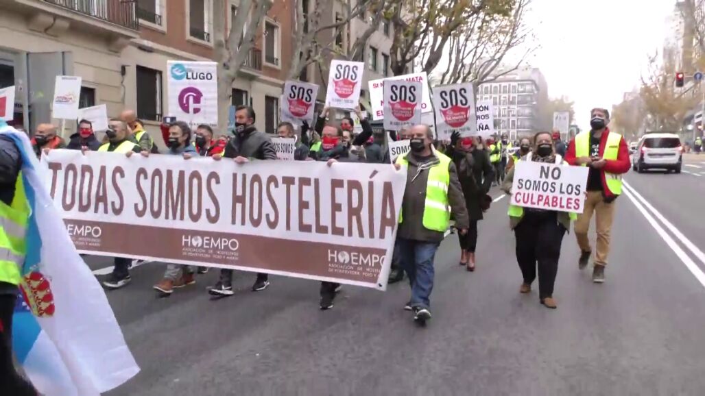 Los hosteleros de Pontevedra llegan a Madrid tras dos semanas a pie para reunirse con los representantes del PSOE y PP. El objetivo es pedir un rescate del sector de la hostelería debido a las consecuencias provocadas por el coronavirus.