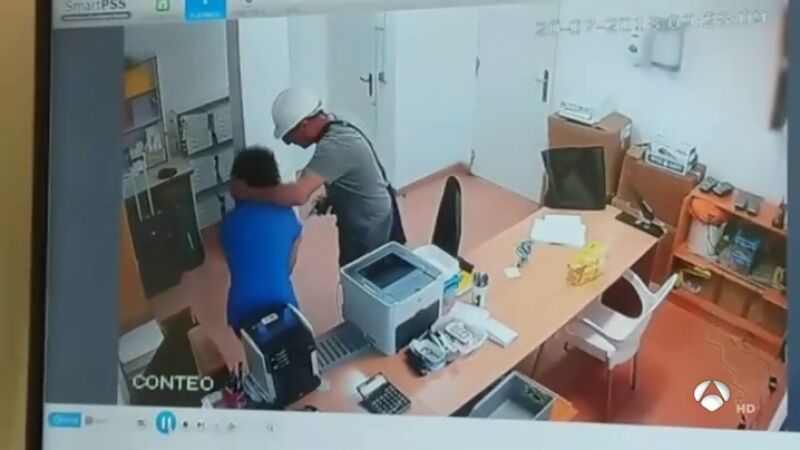 El hombre amedrenta a una de las empleadas con una pistola de fogueo, a la que obliga a buscar las llaves de lo parece ser la caja fuerte. La mujer sigue las indicaciones pero cuando tiene ocasión escapa y el presunto atracador sale detrás de ella.