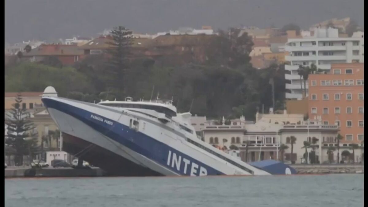 El fuerte viento provoca el hundimiento de un ferry abandonado en Algeciras