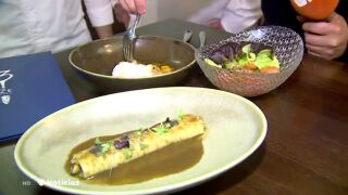 Ensalada con níscalos escavechados, salteado de níscalos y boletus con un huevo frito, y un canelón con la picada de los dos tipos de setas. Estos productos necesitan poca elaboración y el resultado salta a la vista.
