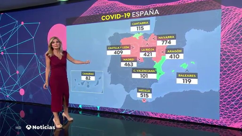 Las comunidades autónomas más afectadas actualmente son Navarra, con 774 casos por cada 100.000 habitantes; Melilla, con 515 casos; y Madrid, con 463. Complicada situación también se da en La Rioja, Aragón, Castilla y León.