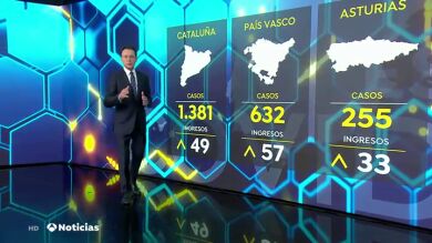 En Cataluñasuben los ingresos por coronavirus en planta, aunque bajan en la UCI. En Cantabria también bajan los ingresos en UCI, aunque suben ligeramente en las plantas hospitalarias.