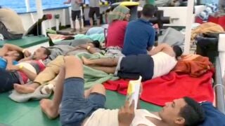 Cuando el barco de la ONG Proactiva Open Arms ha llegado al Puerto de Barcelona, los 60 inmigrantes rescatados que viajan a bordo han prorrumpido en cánticos y aplausos al avistar a lo lejos tierra. Ya se encuentran en la residencia deportiva donde vivirán.