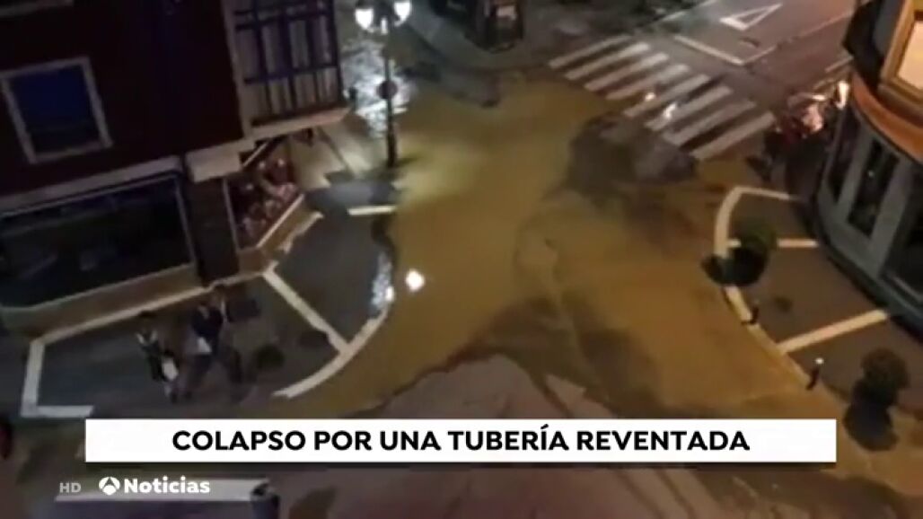 El reventón de una tubería en Asturias provoca cortes de agua y problemas de tráfico