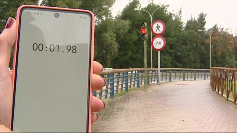 Los conductores tienen que estar muy atentos y darse prisa para que en tan solo dos segundos les dé tiempo a ponerse en movimiento y cruzar el semáforo. Cada hora, pasa 58 minutos en rojo y solo dos en verde.