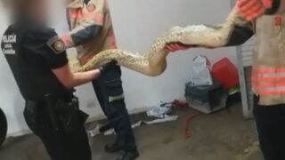 La policía y los bomberos se encargaron de sacar del patio a la serpiente. Fueron necesarias cuatro personas para poder trasladar al reptil.