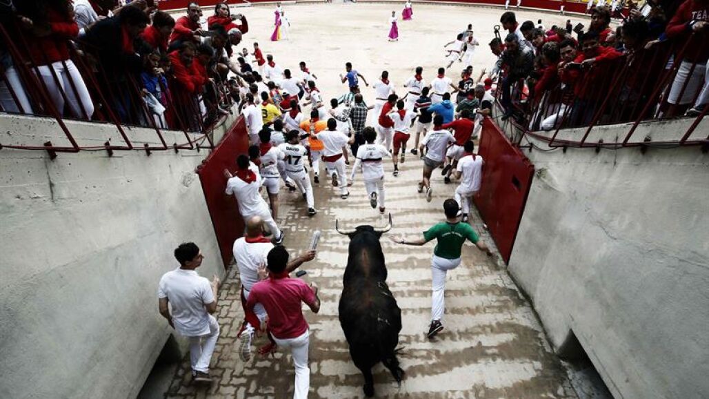 Las embestidas de un toro en Santo Domingo, que ha dejado un herido por asta, y la caída de varias de sus hermanos en Estafeta, que ha dado lugar a momentos de peligro y emoción, no ha ralentizado la carrera que ha tenido una duración de 2 minutos y 18 segundos.