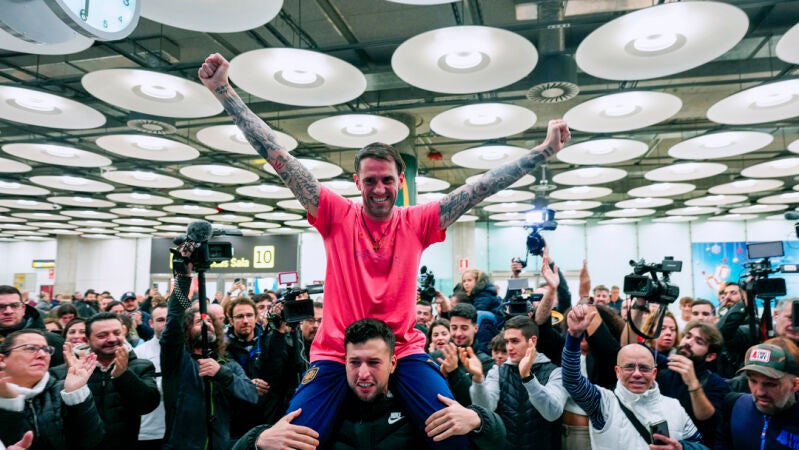 El emotivo y caluroso recibimiento a Santiago Sánchez Cogedor en Madrid: "Voy a preparar un viaje a Irán"