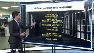 La prisión permanente revisable se puede aplicar en los delitos más graves: asesinato de un menor, tras una violación, crímenes múltiples, terroristas, homicio del jefe del Estado o Genocidio.