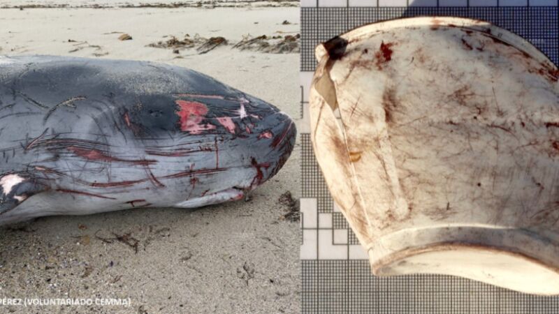 El pasado jueves, la Coordinadora para o Estudio dos Mamíferos Mariños (CEMMA) de Galicia informó de la aparición de una hembra de cachalote pigmeo (Kogia Breviceps) varada muerta en la costa de Malpica (A Coruña). La necropsia realizada al animal determinó que la causa de su muerte fue un vaso de plástico que había ingerido, causándole lesiones y heridas en el estómago.
