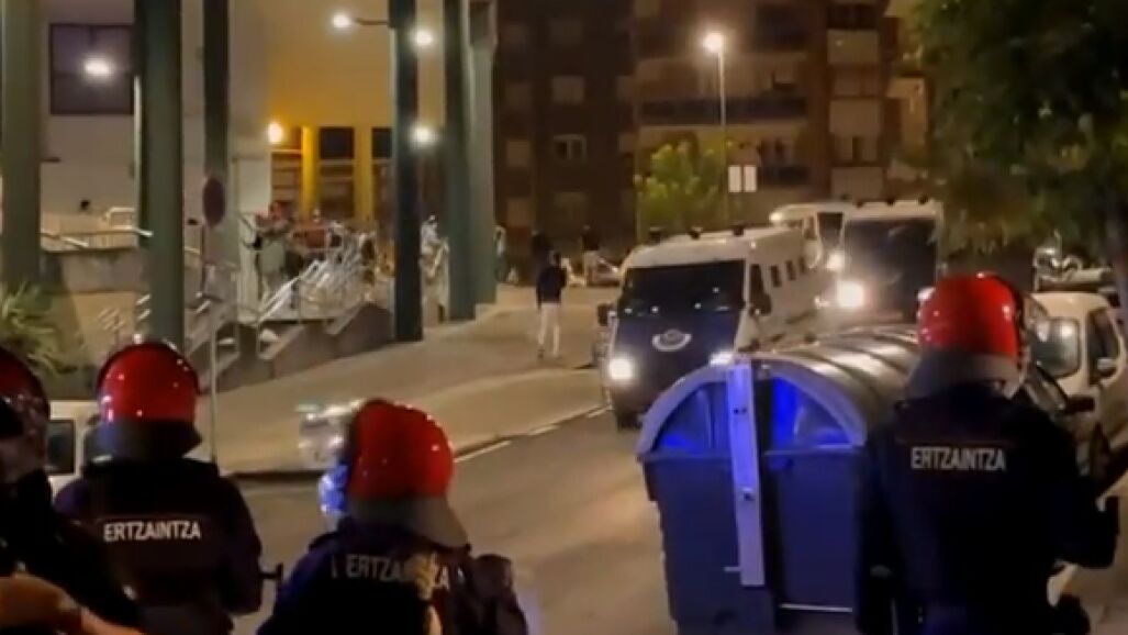 Entre otros, la Ertzaintza ha disuelto las 'no fiestas' del municipio de Galdácano, en Vizcaya, donde varios jóvenes respondieron con botellazos y latas contra el hilo policial.