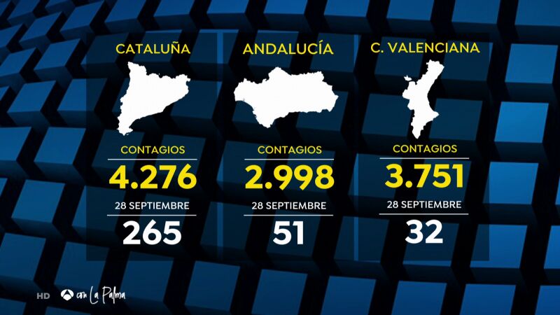 Cataluña registraba a finales de septiembre 265 casos en una jornada, mientras que ahora son 4.276 casos. Andalucía registraba 51 casos, mientras que ahora son 2.998 casos. Y la Comunidad Valenciana registraba 32 contagios, pero ahora registra 3.751 casos en una jornada.