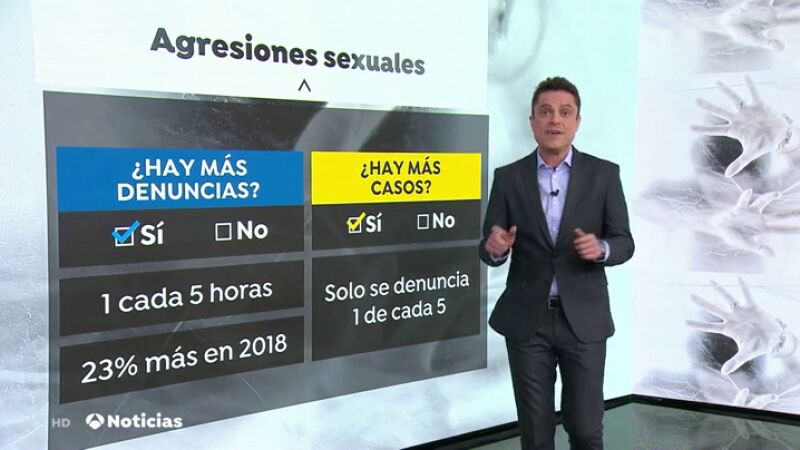 Según los últimos datos oficiales, en España se denuncia una violación cada cinco horas. Una triste estadística que crece 23% en el año 2018. Hay más denuncias y también hay más casos. De hecho los expertos dicen que sólo llegan a la Policía o a los juzgados uno de cada cinco casos.