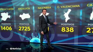 Con estos datos, este sábado las comunidades siguen notificando altas tasas de transmisión por lo que están aprobando cada vez más restricciones. La comunidad de Castilla y León reporta 1.406 nuevos casos, la cifra más alta desde que empezó la pandemia, Andalucía 2.725, Navarra 541, la Comunidad Valenciana 838 y Cataluña, con 2.710, ha duplicado los contagios en dos semanas.