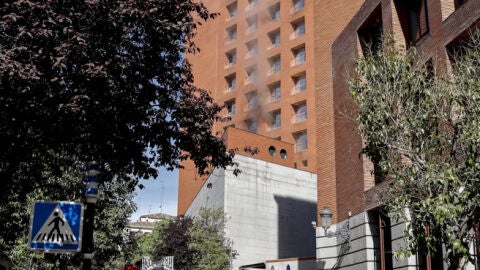 El fuego no ha llegado a destruir la fachada, pero ha generado una gran columna de humo, visible desde muchos puntos de la capital.