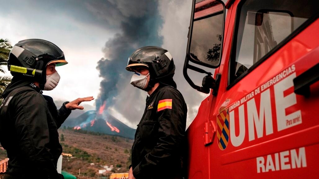 Este lunes, además, el Instituto Volcanológico de Canarias, Involcan, ha informado de una nueva ruptura del cono del volcán de Cumbre Vieja, en La Palma, lo que ha provocado más desbordamientos de lava y desprendimientos que han generado corrientes de aire.