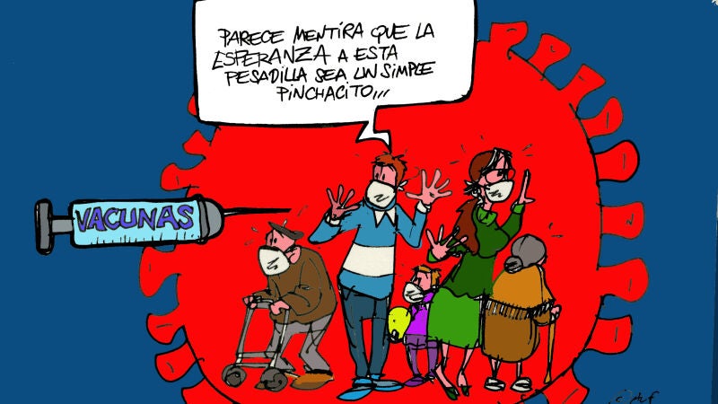 No obstante, en la calle estas novedades sobre el avance de las vacunas se reciben con esperanza. Así lo ve también nuestro ilustrador, Alfredo Boto Hervás.