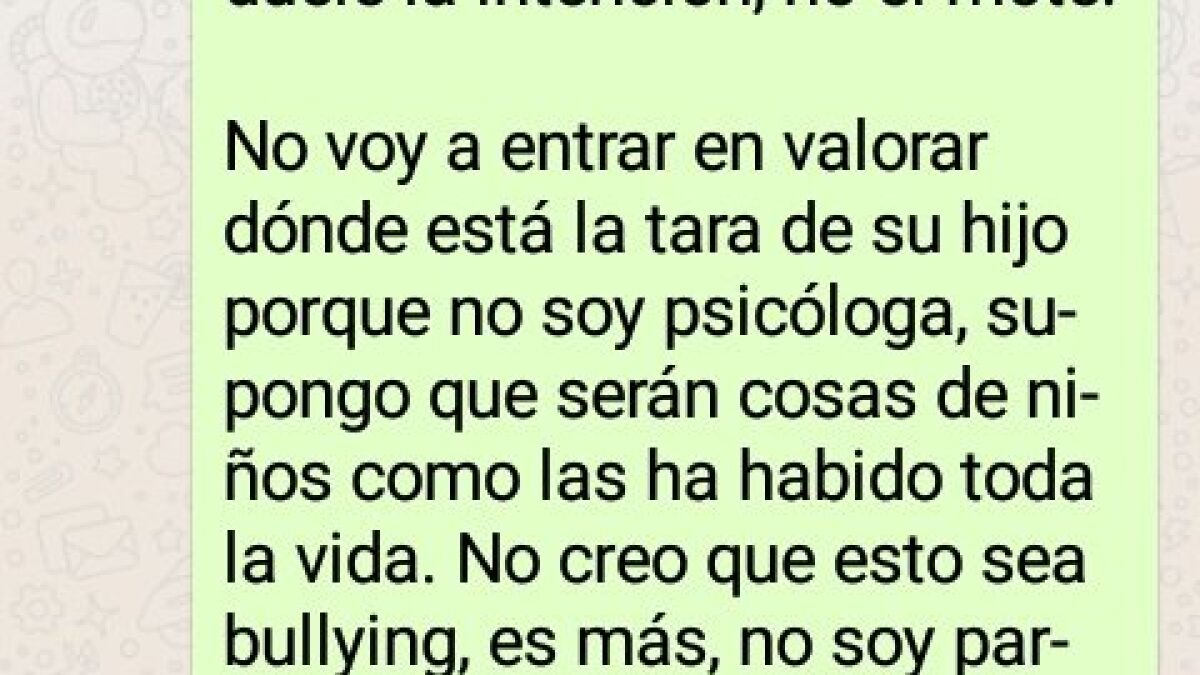 Después de explicar que su hijo lleva meses sufriendo acoso en el colegio y que el diálogo no ha servido de nada, esta madre comunica a los padres del otro menor que "a partir de mañana" su hijo está autorizado a responder ante tal situación de una forma poco ortodoxa.