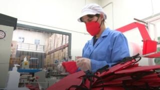 El aumento de la incidencia coincide con la relajación de las medidas y las fábricas de mascarillas ya lo han notado. "Ha habido una bajada de consumo motivada por dos razones: el periodo vacacional y la eliminación de la obligatoriedad de llevar mascarillas en exteriores", explica el responsable de una de ellas.