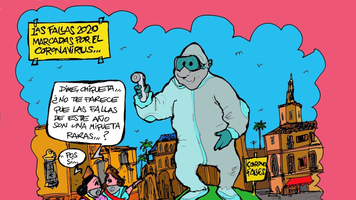 Mientras toda Europa suspende los grandes eventos para evitar que el coronavirus se propague, las Fallas de Valencia siguen en pie. Es muy probable que el Covid-19 sea el tema de conversación entre todos los valencianos. Así lo ve nuestro ilustrador, Alfredo Boto-Hervás.