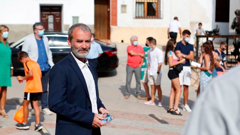 El director del Centro de Coordinación y Alertas Sanitarias ha llegado andando a la Plaza De la Iglesia de Villafeliche, acompañado de su esposa y de la consejera de Sanidad del Gobierno de Aragón, SiraRepollés.