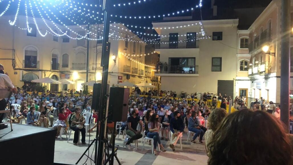 Las actuaciones en directo se han celebrada en la plaza principal de la localidad alicantina y los asistentes han cumplido con la medida de llevar puesta mascarilla pero viendo las imágenes lo que no se ha respetado ha sido la distancia de seguridad por el coronavirus.