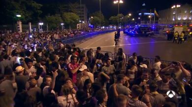 Los aficionados del Real Madrid que no han viajado a Kiev y se quedan en la capital, lo harán en una ciudad que ya tiene montado un fuerte dispositivo de seguridad en distintos puntos. Más de 80.000 personas se acercarán al Santiago Bernabéu para ver ahí el partido y ya se nota esa presencia policial.